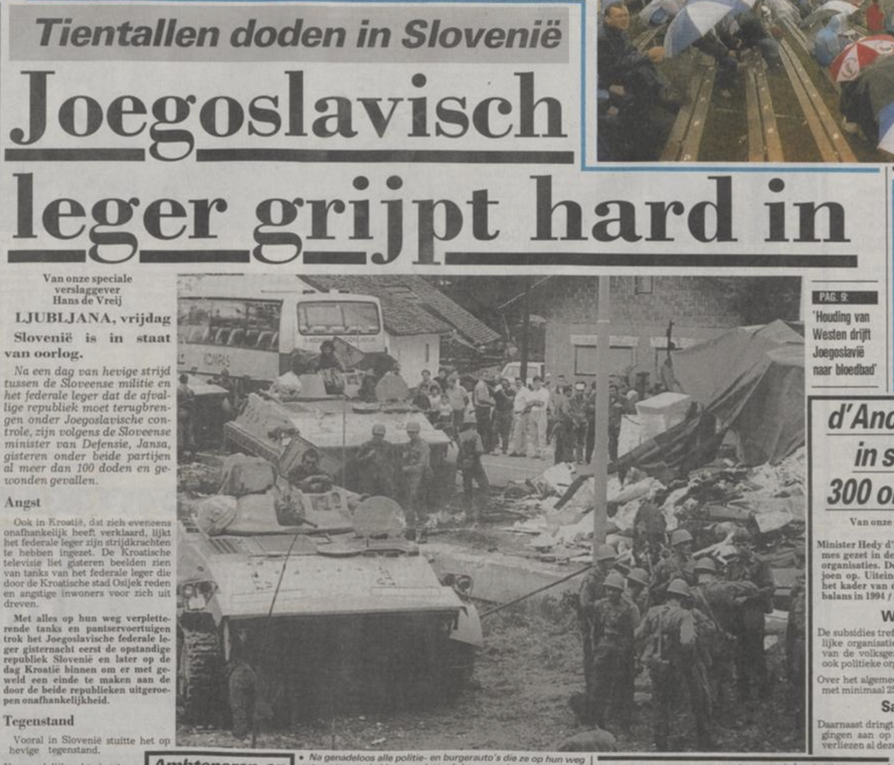 Dertig jaar geleden (op 27 juni 1991) begin in Slovenië de eerste van de vier burgeroorlogen in het voormalige Joegoslavië. Hij duurde maar kort (10 dagen) en er vielen betrekkelijk weinig slachtoffers. De oorlogen in Kroatië, Bosnië en Kosovo zouden volgen en waren van een heel andere orde van grootte. Maar voor mij was het de eerste oorlog die ik meemaakte. Alleen al daarom een indrukwekkende ervaring.