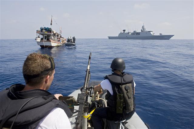 Nadat de aanval was mislukt, vluchtte de skiff met de vermoedelijke zeerovers naar het moederschip, een kleine dhow. Het Britse marineschip RFA Wave Knight dat in de buurt was, reageerde op de aanval door de vermoedelijke zeerovers te lokaliseren en onder schot te houden. De Zeven Provinciën, op dat moment op een afstand van ongeveer 10 mijl bezig met de escorte van 4 koopvaardijschepen, kreeg van de NAVO opdracht om aan boord te gaan van de dhow.