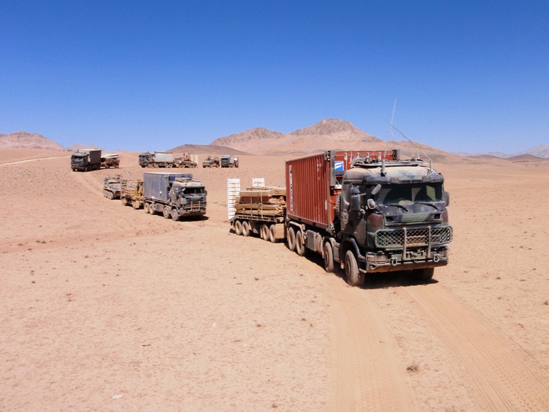 Een verhaal in beeld. Een Australisch/Nederlands konvooi bracht onlangs bouwmateriaal naar de Mirabad-vallei ten oosten van Tarin Kowt, Uruzgan. De rit voerde door de dasht (woestijn) ten noordoosten van Tarin Kowt en duurde tien uur. Dat laatste vooral omdat er