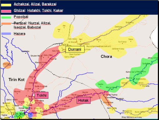 Now, I’m not an expert on Afghan tribes. Still, the other day I was discussing the situation in Uruzgan (Oruzgan) province and pointed out that, in my humble opinion, ISAF hadn’t managed yet to help bridge the gap between Durrani and Ghilzai Pashtuns. We were looking at an area to the North and East of the provincial capital Tarin Kowt/Tirin Kot.
